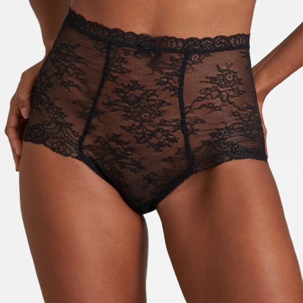 La collection Danse des sens Aubade, comme son nom l’indique, fait appel à tous les sens. La richesse des détails raffinés et sophistiqués offrent un spectacle sensoriel plein de séduction. Les motifs floraux mettent en valeur la beauté du corps féminin avec délicatesse. La variété des motifs offre une poésie de sens donnant vie à des émotions intenses à travers ses délicates pièces de lingerie fine. La culotte taille haute Danse des sens est confectionnée entièrement en dentelle, offrant une transparence irrésistiblement sexy.