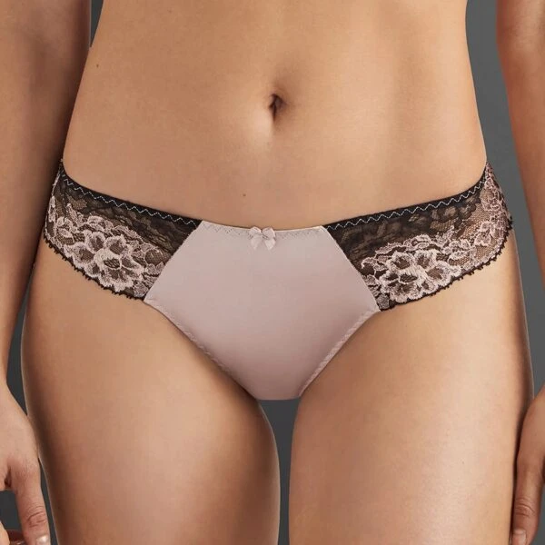 La culotte italienne Femme Glamour Aubade est une pièce travaillée et raffinée. Une laize en satin de soie stretch bicolore sur le milieu de la culotte, offre un confort d’exception. Sur les hanches, la dentelle Calais Leavers s’étend avec élégance, offrant une allure sophistiquée. Au dos de la culotte, des galons de dentelle bicolores se superposent, cette dualité de teintes donne un charme intense à ce modèle. Les coutures triangulaires mettent en valeur les formes accompagnée d’un tissu en satin de soie pour une touche supplémentaire de glamour. Le fond est en 100% coton pour un maximum de confort.