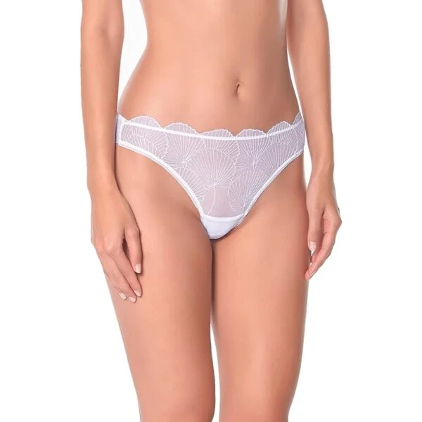 La collection Huit Mandarin incarne l’alliance parfaite entre la sensualité, la légèreté et l’élégance. Chaque pièce de cette collection offre une transparence subtile et sensuelle, créant ainsi une ambiance envoûtante. Les broderies luxueuses représentant des feuilles de lotus exotiques ajoutent une touche d’opulence et mettent en valeur la féminité. La maille délicate caresse délicieusement la peau, ajoutant une sensation de douceur et de bien-être. Cette collection est un choix incontournable pour celles qui recherchent à la fois une esthétique sublime et un confort exceptionnel. Le string Mandarin est un choix idéal, car il offre un confort optimal grâce à son tulle fin et une sensualité exceptionnelle avec sa transparence. Son design élégant et idéal pour compléter votre ensemble de lingerie.