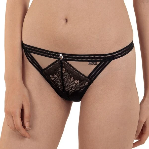 Le string ouvert Soul Lisca présente une coupe sexy et échancrée. Une merveilleuse dentelle extensible aux motifs abstraits décore le centre du string avec charme. Le tulle transparent révèle subtilement vos formes offrant des ouvertures sexy sur l’ensemble du string. Un bijou Swarovski apporte une touche d’éclat. Le dos en tulle offre une visibilité séduisante. C’est un choix audacieux pour se sentir séduisante et confiante.