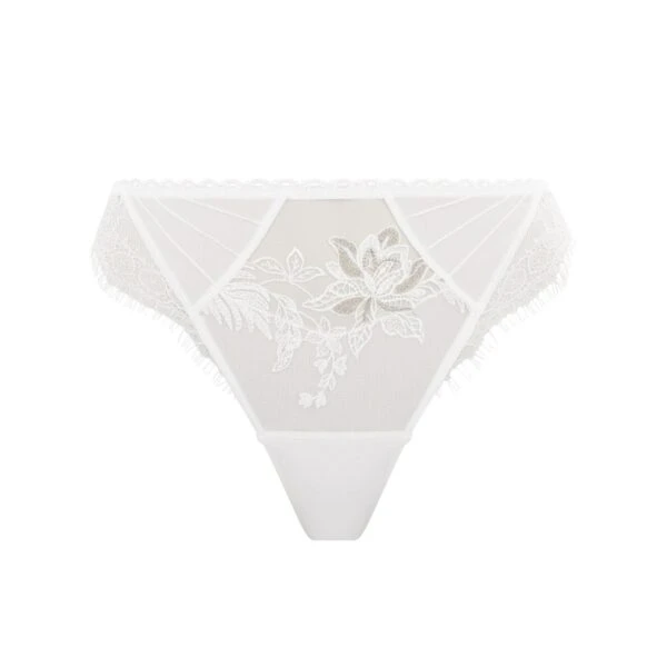 Le string Orchidée Beauté Lise Charmel met en valeur votre fessier tout en restant invisible sous vos vêtements. La dentelle haute couture, les guipures brillantes et le tulle plissé apportent des motifs et du relief à cette pièce légère et lumineuse. Des orchidées et des fougères brodées avec des fils brillants apportent une touche d’éclat sur le devant. La fine dentelle sur les côtés et à l’arrière de ce string ajoute une touche de charme, tandis que la dentelle à franges donne un style luxueux à cette pièce.