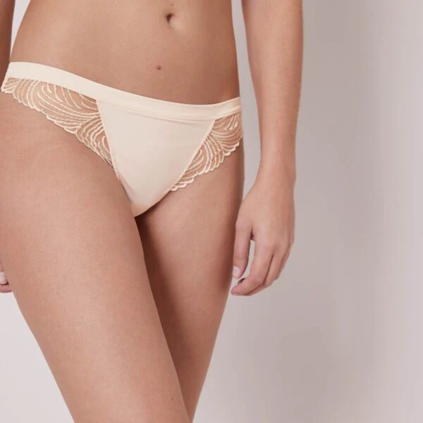La collection Nuance Simone Pérèle séduit avec sa broderie suisse aux motifs modernes et attrayants. La juxtaposition de la broderie sur le tulle transparent crée un effet saisissant et témoigne d’un savoir-faire corsetier unique. Les contours du corps sont mis en évidence avec élégance, tandis que la broderie ajoute une dimension artistique remarquable. Le tanga Nuance révèle votre peau grâce à la transparence du tulle au niveau des hanches. La maille lisse et opaque s’adapte parfaitement à toutes les silhouettes. Choisissez ce modèle pour une allure sophistiquée mettant en lumière les formes naturelles de votre corps.